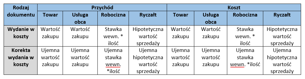- Wydanie w koszty