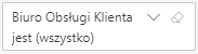 Sekcja filtrów głównych, to zestaw podstawowych parametrów filtrowania, zawężających dane wynikowe. Filtry znajdziesz w prawej, bocznej sekcji raportu BI. Sekcja domyślnie jest zminimalizowana. Aby wyczyścić filtry, kliknij w ikonę gumki, w prawym górnym rogu karty każdego filtra. Po kolorze karty filtra sprawdzisz, jakie filtry zostały przez Ciebie zastosowane: