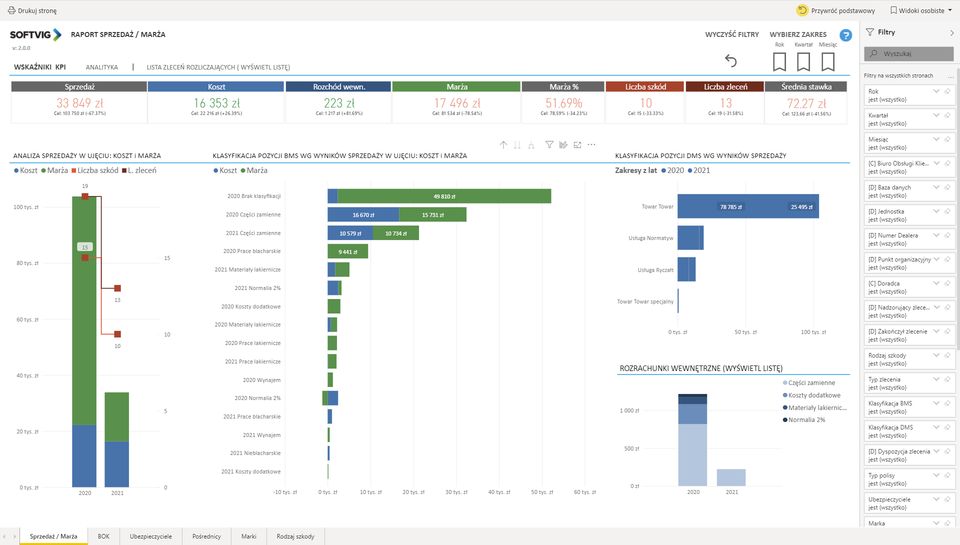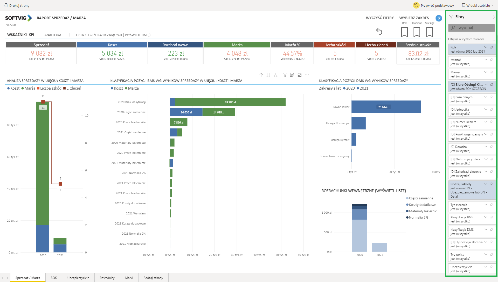 - Więcej informacji na temat dostępnych wizualizacji użytych w raportach BI, możesz znaleźć na stronie -