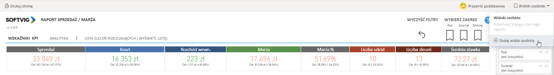 Jeżeli chcesz zapisać swoje aktualne ustawienia dotyczące filtrów czy wizualizacji, możesz to zrobić w łatwy sposób korzystając z widoków osobistych. Przejdź do sekcji