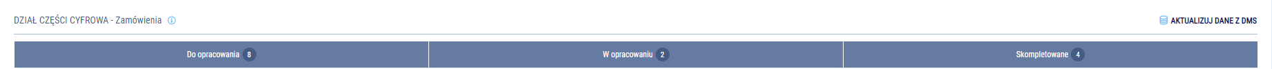 (skompletowany lub zakończony) – pracownik działu części skompletował lub wydał zamówienie na części