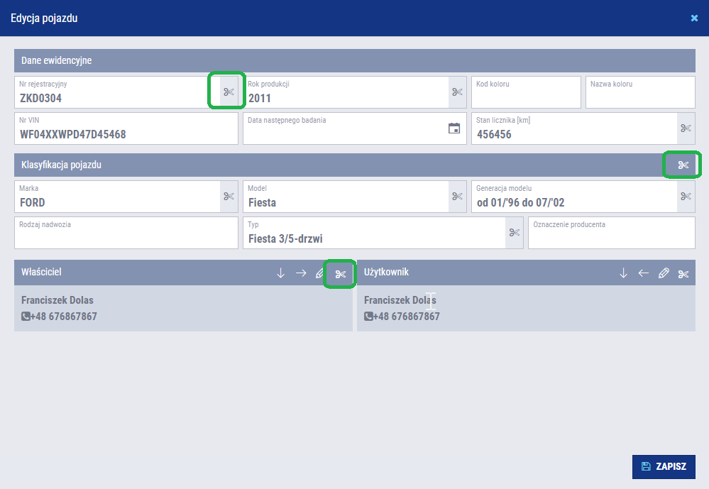 - Otwórz teczkę naprawy – powoduje przejście do pełnej teczki naprawy