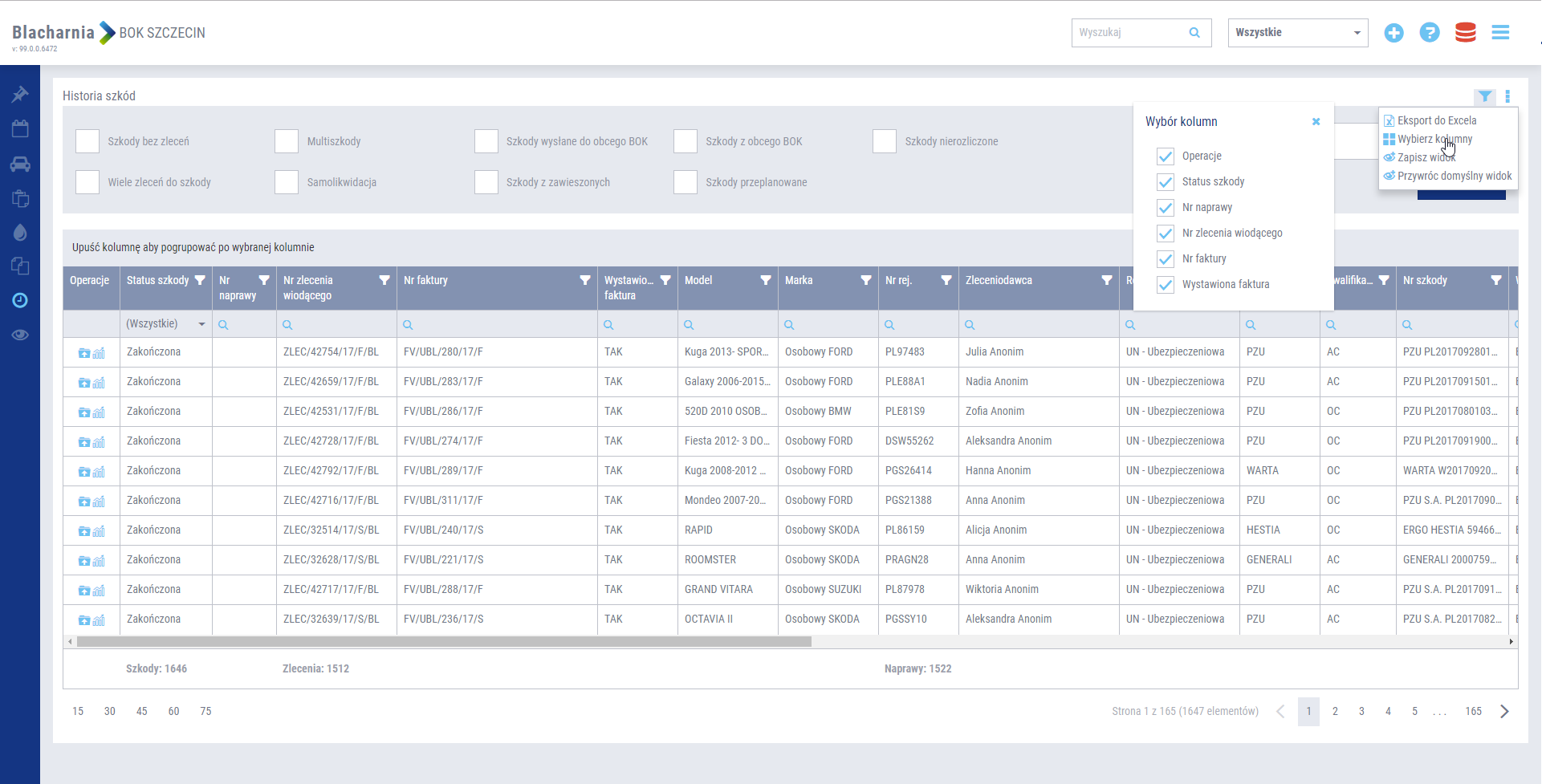 - Tablica zarządzania szkodami