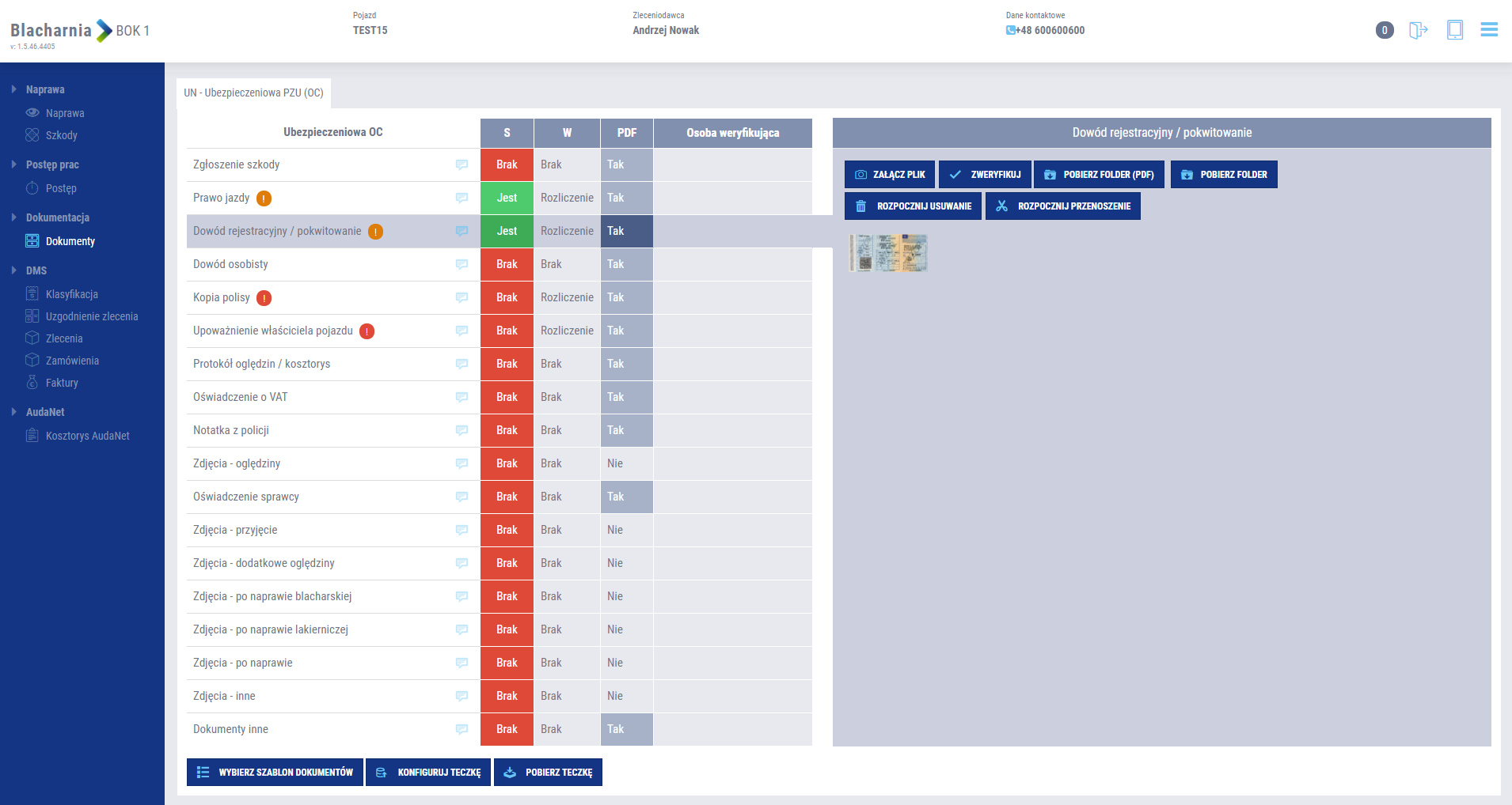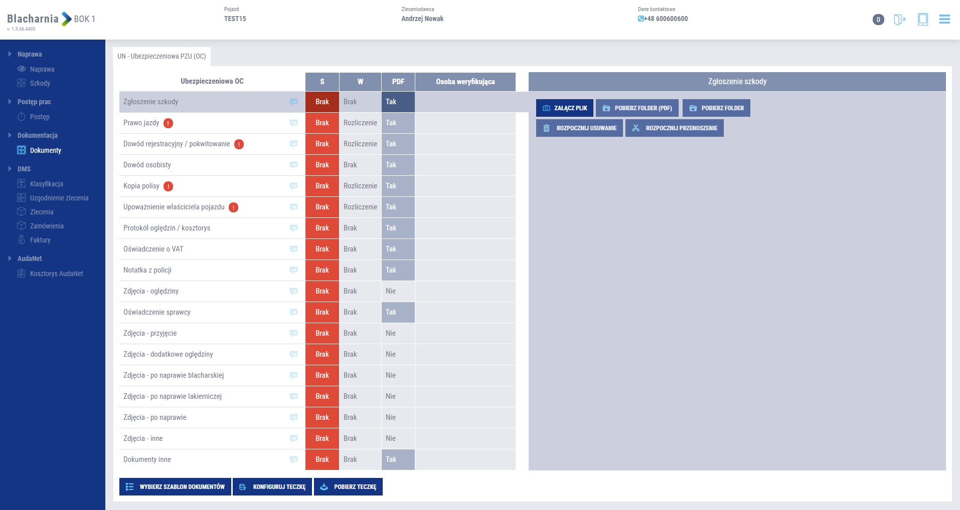 Przykład: Proces kompletacji dokumentów dla naprawy TEST15