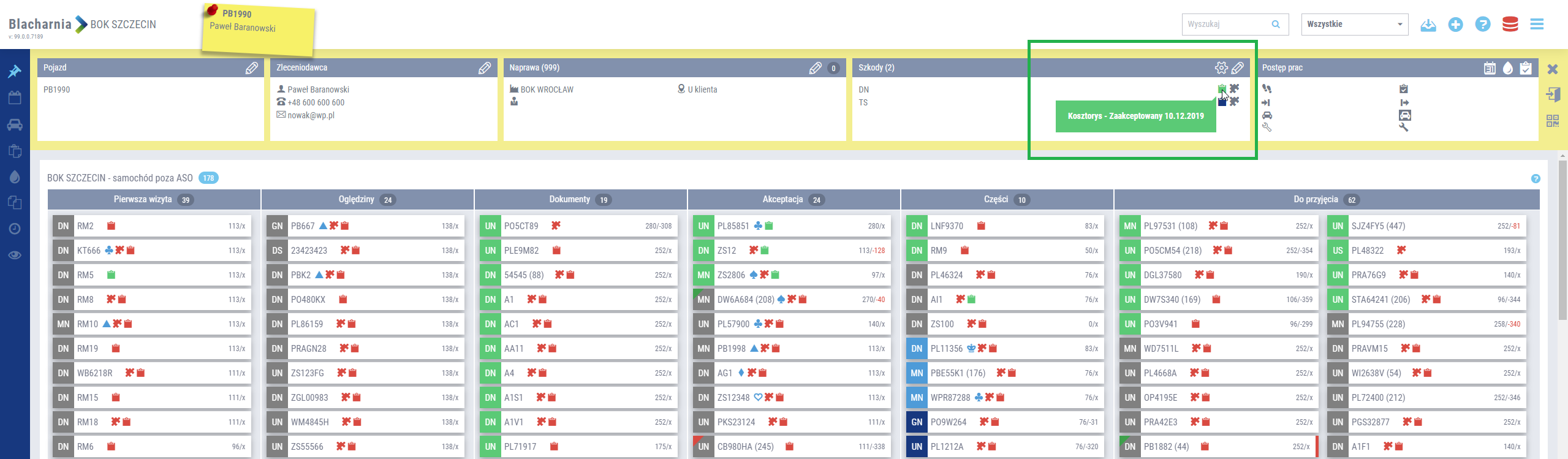 - Kolor zielony (zakończony) - kosztorys posiada akceptację TU i akceptację ASO.