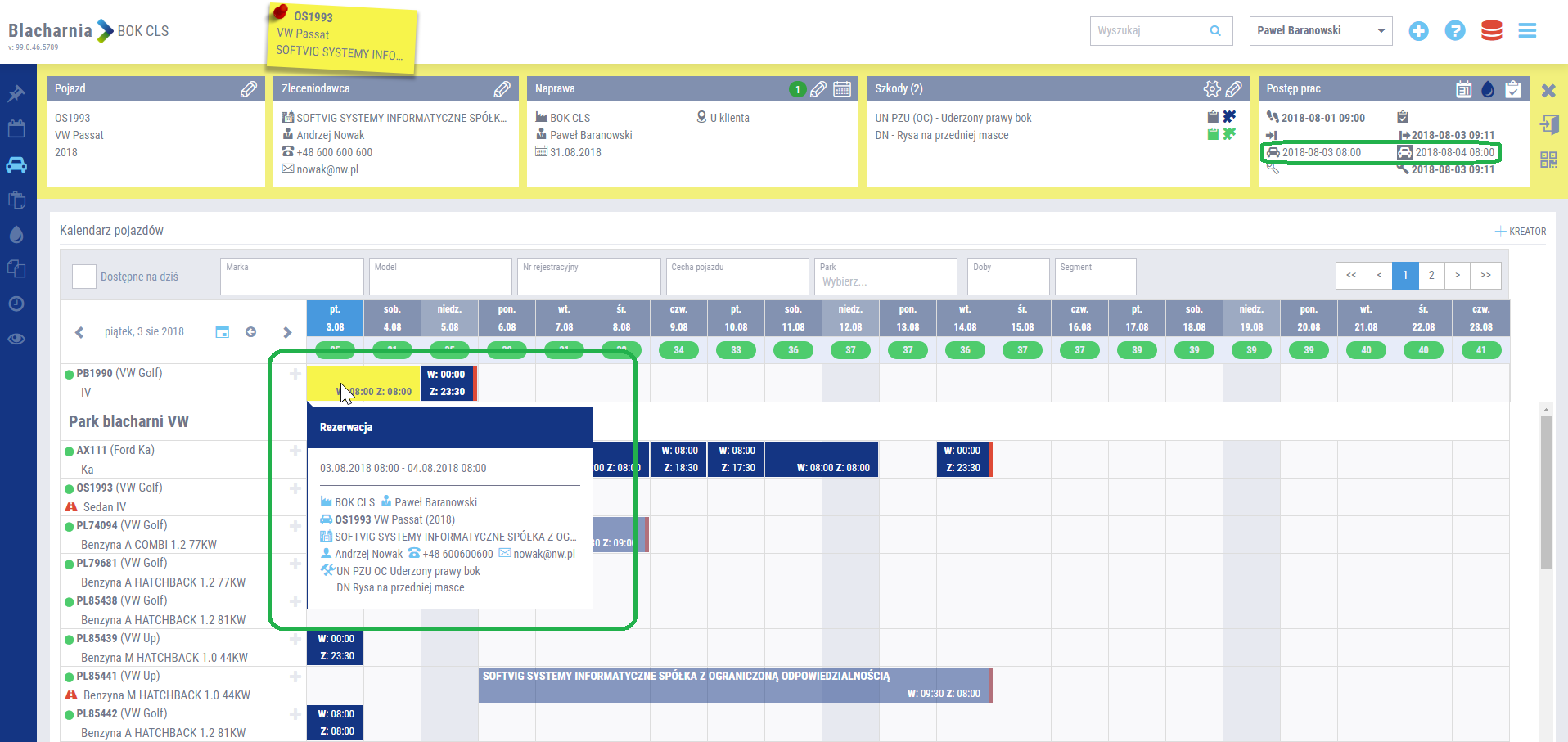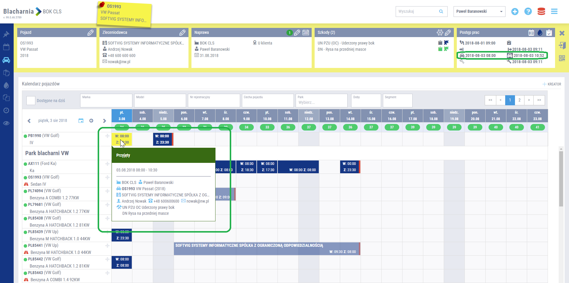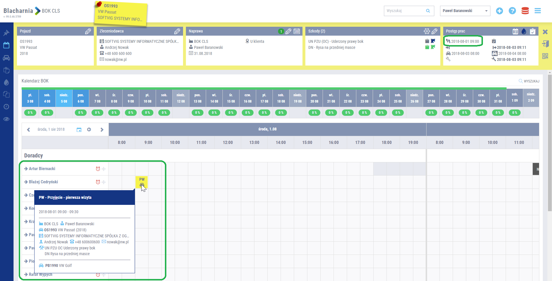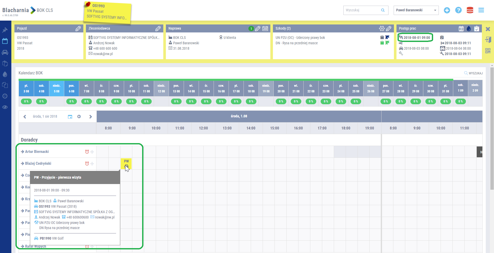 - Dla kalendarza doradców (pierwsza wizyta, oględziny, przyjęcie i wydanie pojazdu)