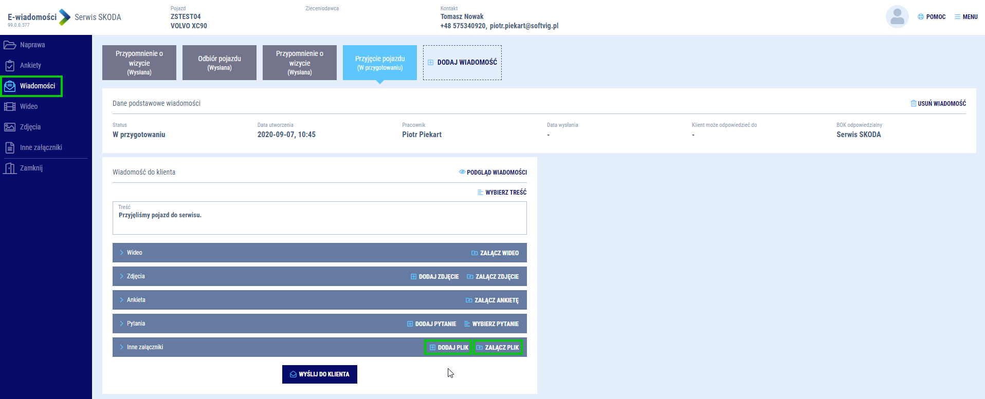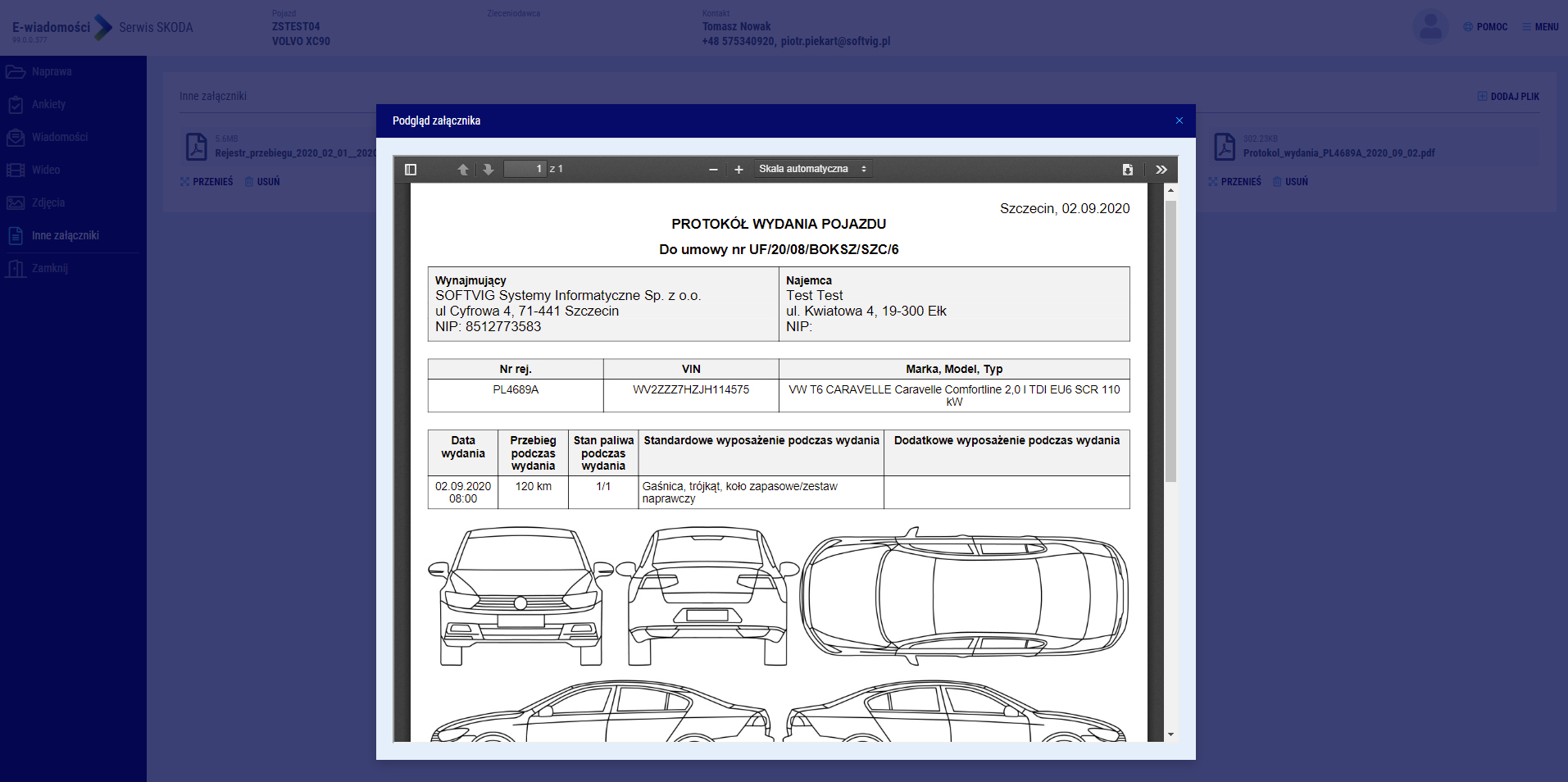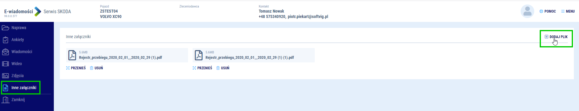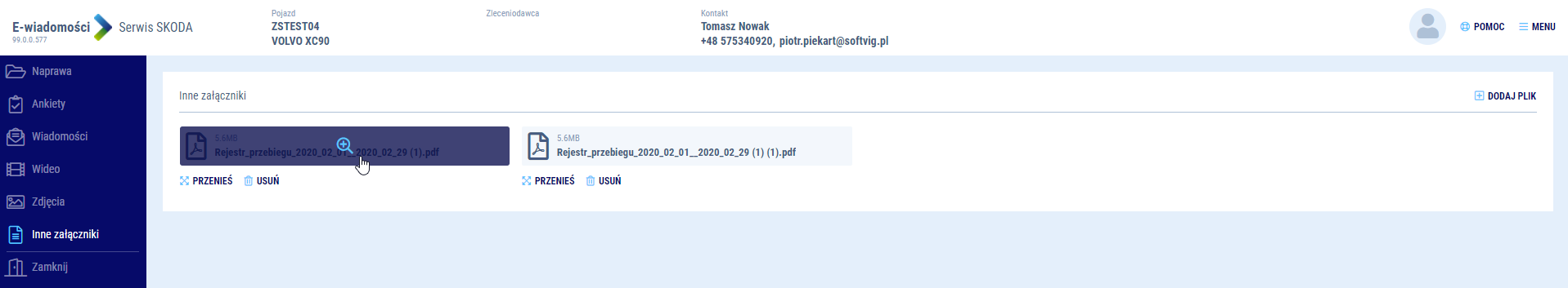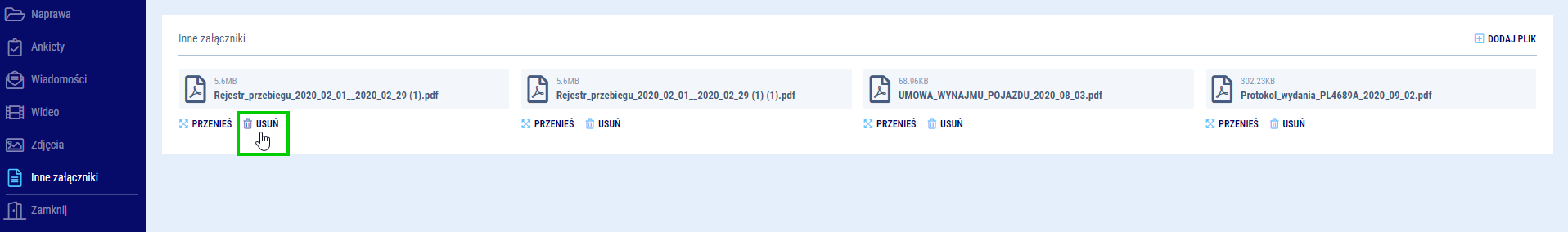 dostępną przy każdym pliku. W przypadku usunięcia pliku z wiadomości, załącznik nadal pozostaje dostępny w menu Inne załączniki w naprawie.