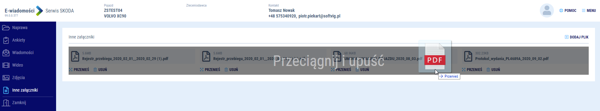 Dodawanie załączników z menu Inne załączniki poprzez operację 'przeciągnij i upuść'