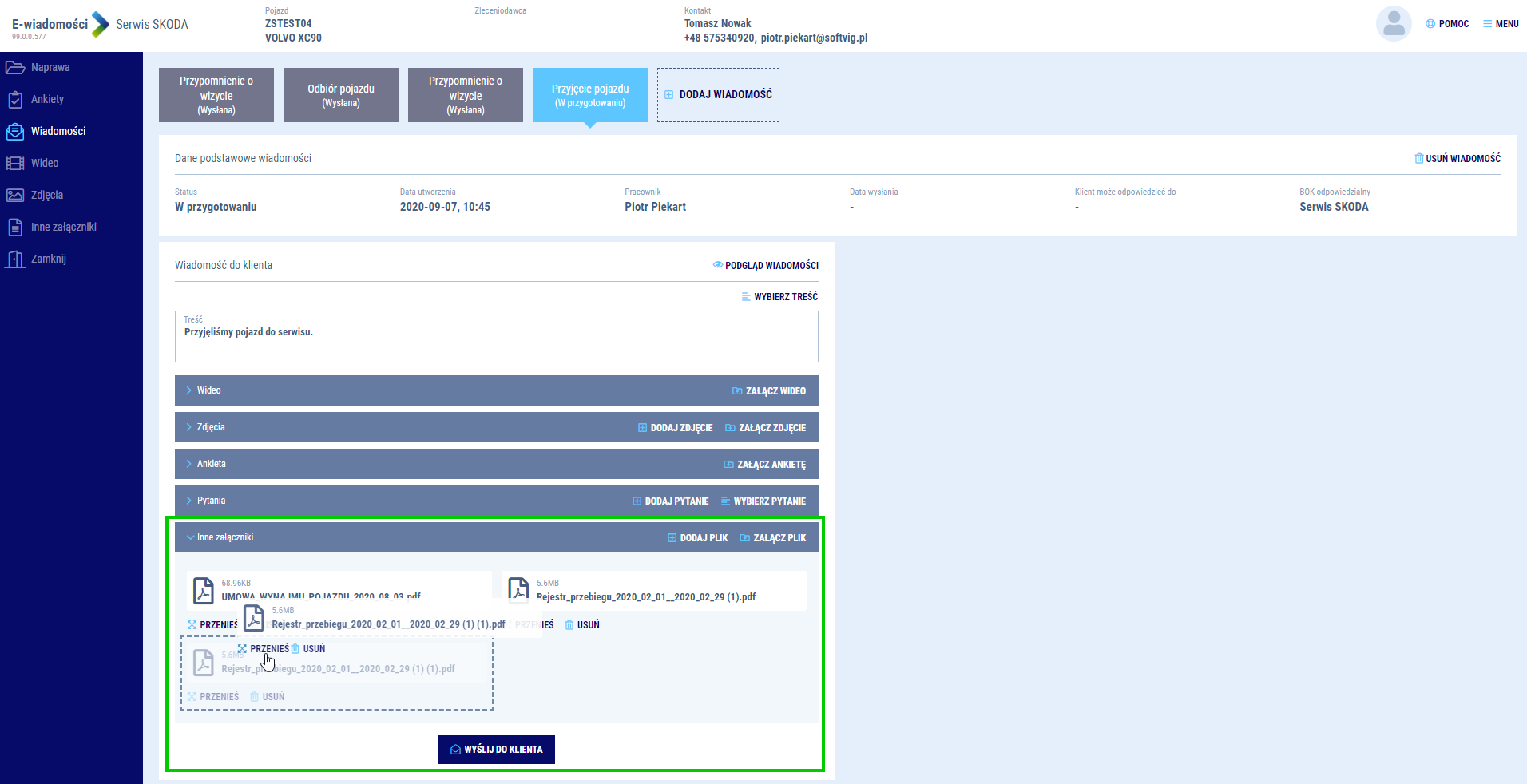 Jeżeli Doradca dodaje więcej niż jeden załącznik do wiadomości, to ma możliwość ustawienia kolejności załączników. Wystarczy użyć ikony operacji przenieś