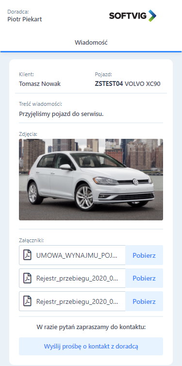 Klient musi pobrać pliki załączników aby je otworzyć.