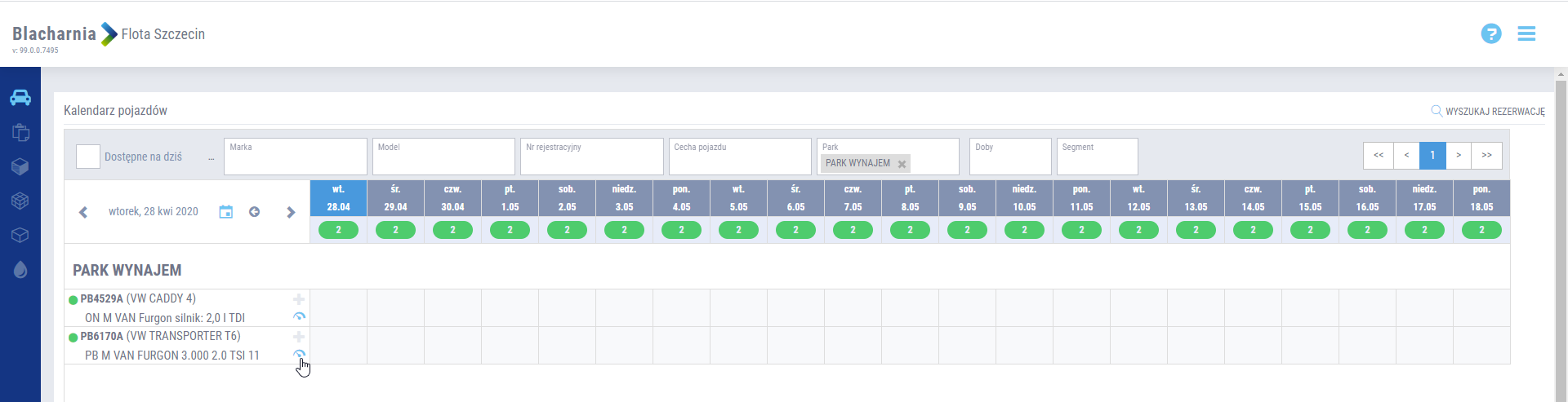 • W kalendarzu pojazdów