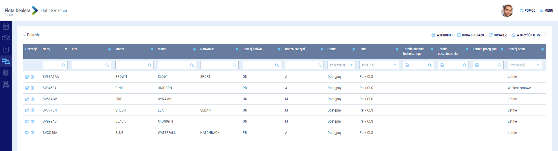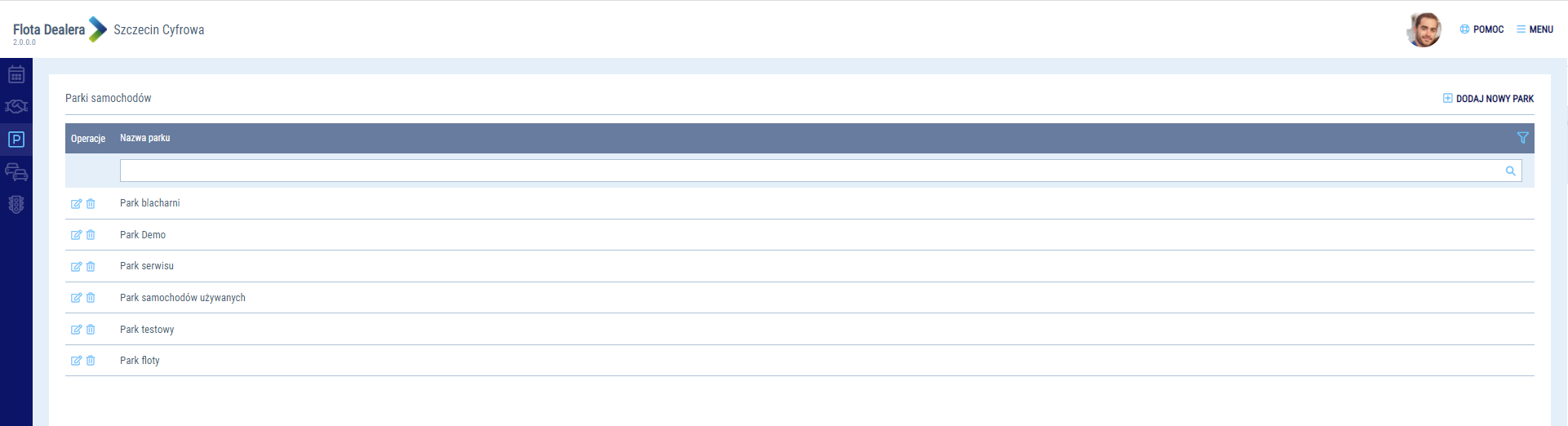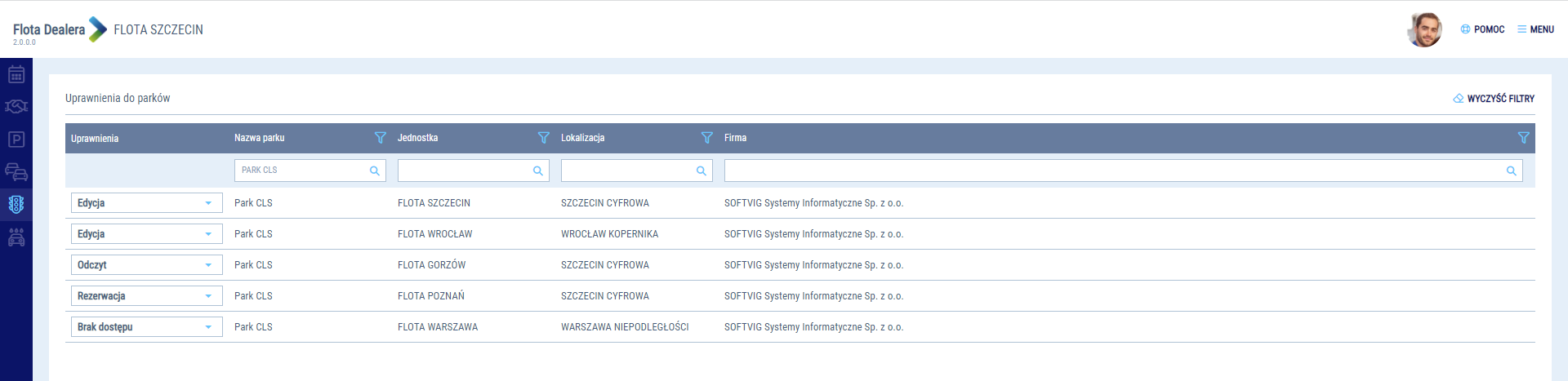 • Dział: „Flota dealera” posiada pełne prawa do wszystkich swoich parków założonych przez siebie