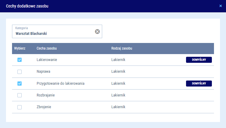 Są to dodatkowe kompetencje, którymi możesz zarządzać. Niektóre rodzaje zasobów posiadają swój własny zestaw cech, które pozwalają na bardziej szczegółową konfigurację. Każdy zasób posiada własny, domyślny zestaw kompetencji. W każdym momencie możesz jednak zdecydować o konfiguracji indywidualnej za pomocą operacji