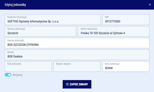 Niektóre dane są niedostępne do edycji i mogą być edytowane wyłącznie przez SuperAdmina
