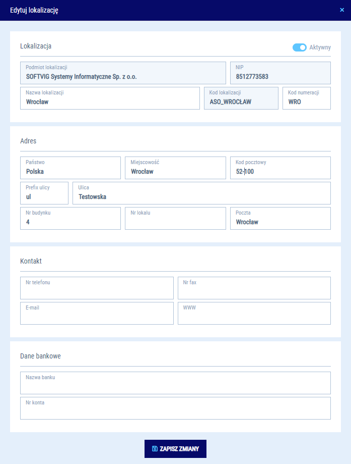 - Lokalizacje - fizyczne miejsca pracy ASO