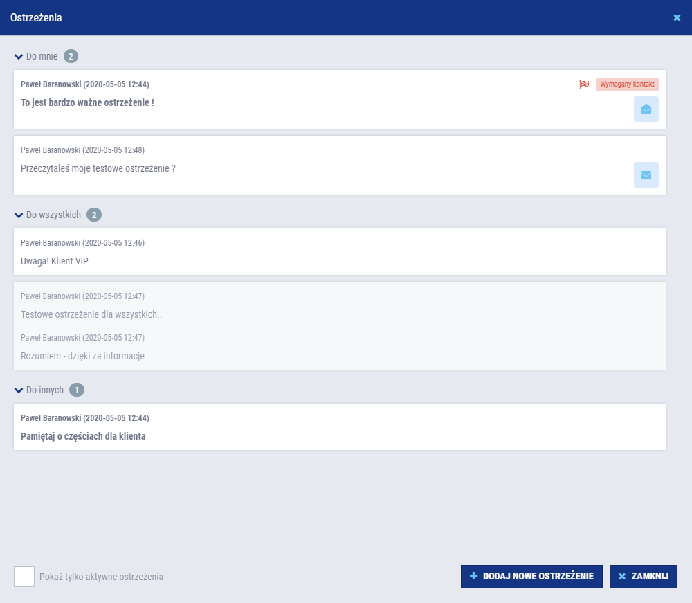 - Więcej szczegółowych informacji na temat dodawania ostrzeżeń w wersji mobilnej znajdziesz tutaj