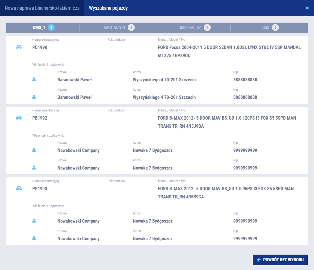 - MMT (Marka, Model, Typ) - usprawniający uzupełnianie danych pojazdu dla naprawy