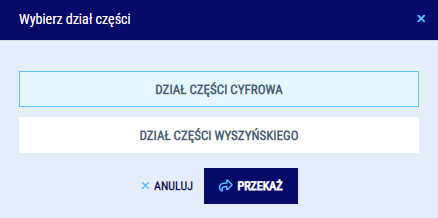 Okno wyboru działu części