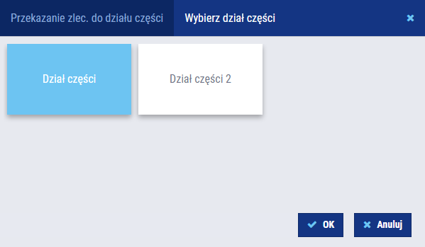 Rysunek – Okno wyboru działu części