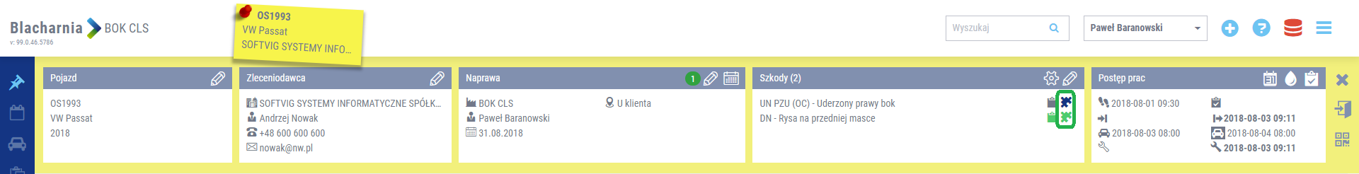 Wybrane przez Ciebie operacje będą miały wpływ na teczkę naprawy i będą widoczne w trzech miejscach systemu: