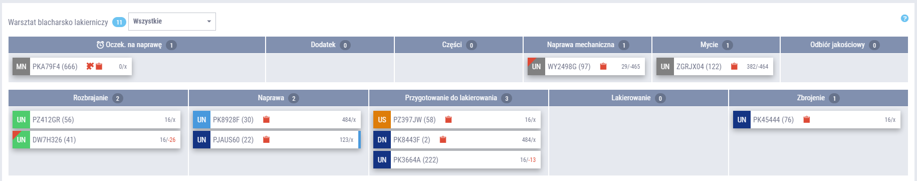 Mistrz blacharni zobaczy teczkę i będzie mógł podjąć pracę z naprawą. Etap oczekiwania na naprawę to sekcja, w której dział BOK i dział warsztatu blacharsko-lakierniczego wymieniają między sobą informacje.