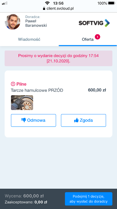 Rysunek - Podgląd oferty w wiadomości dla klienta