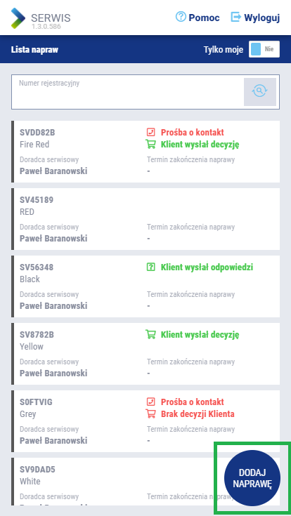 Zapisanie przez Ciebie formularza spowoduje założenie nowej naprawy i umieszczenie jej na liście napraw.