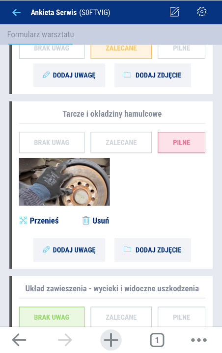 Uzupełnij pozycje ankiety. Masz możliwość określania statusu, dodawania uwag i zdjęć.