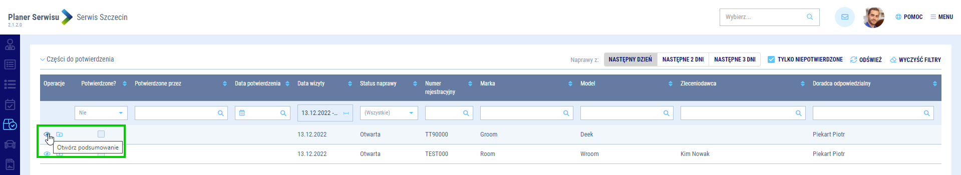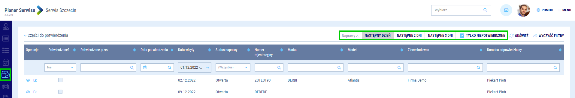 bez zatwierdzonych części na kolejny dzień. Możesz dowolnie modyfikować filtry i wyświetlać interesujące Cię informacje.