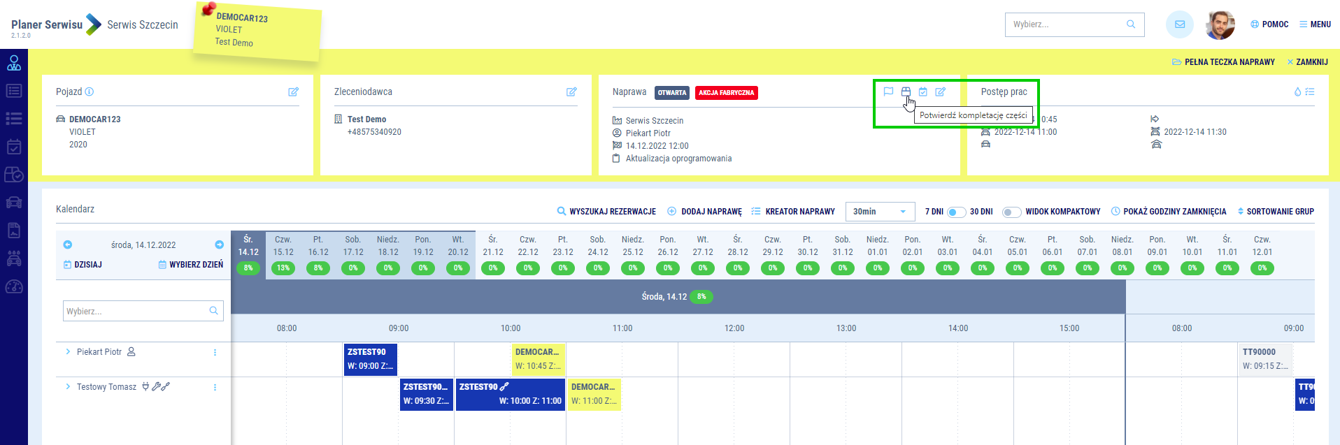 Potwierdzanie kompletacji części z poziomu Kontekstu naprawy
