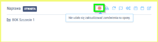 W kontekście naprawy zawierającej zamówienie z hotelu opon w sekcji naprawa, znajdziesz dodatkową ikonę opony . Może ona przyjmować 2 kolory: