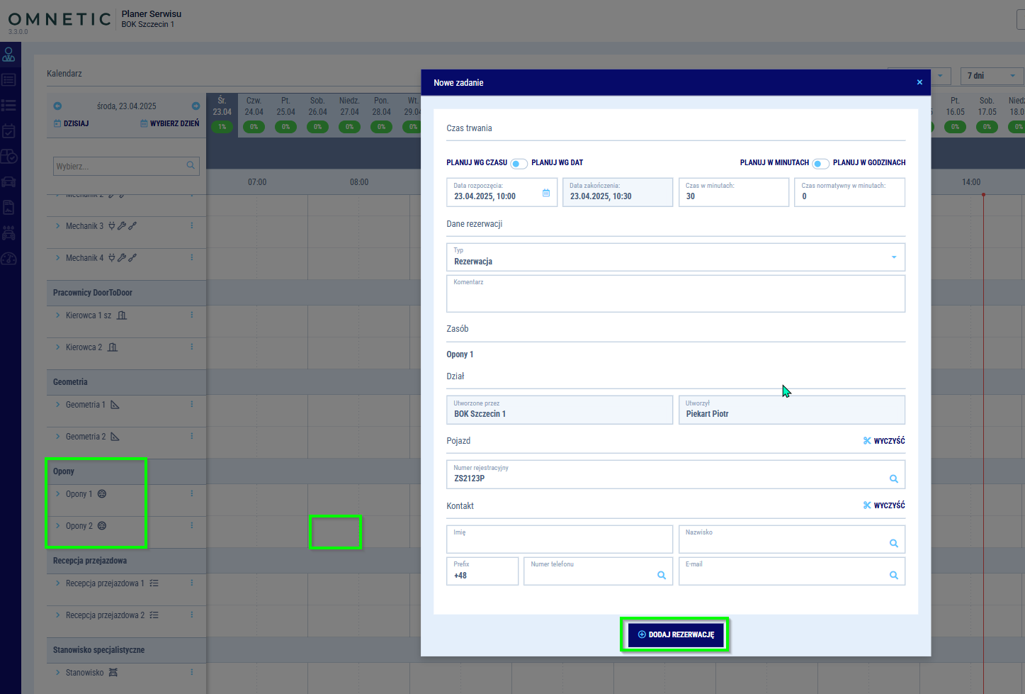2. Rozpoczęcie od rezerwacji stanowiska wymiany opon - bez istniejącej naprawy