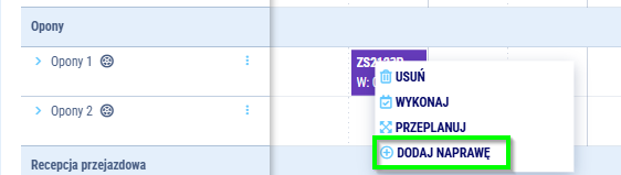 Dodanie obsługi opon dla istniejącej naprawy - termin dostarczenia - przy istniejącym zadaniu dla mechanika