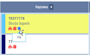 - Przyjęty - naprawy, w których zaplanowano rezerwację przyjęcia (teczka przesunie się do tej kolumny automatycznie po wykonaniu przyjęcia pojazdu)