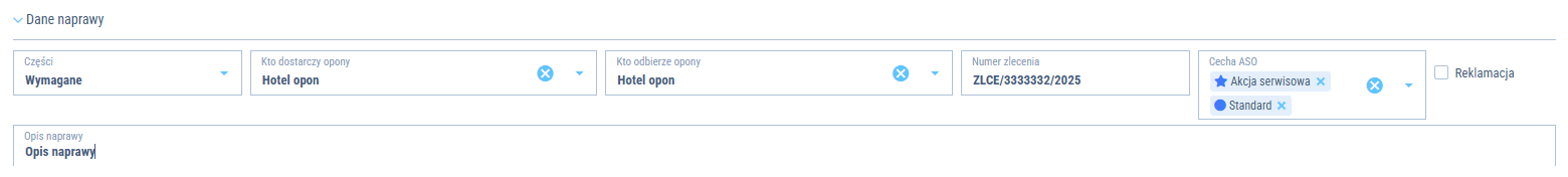 Kreator naprawy - dane naprawy