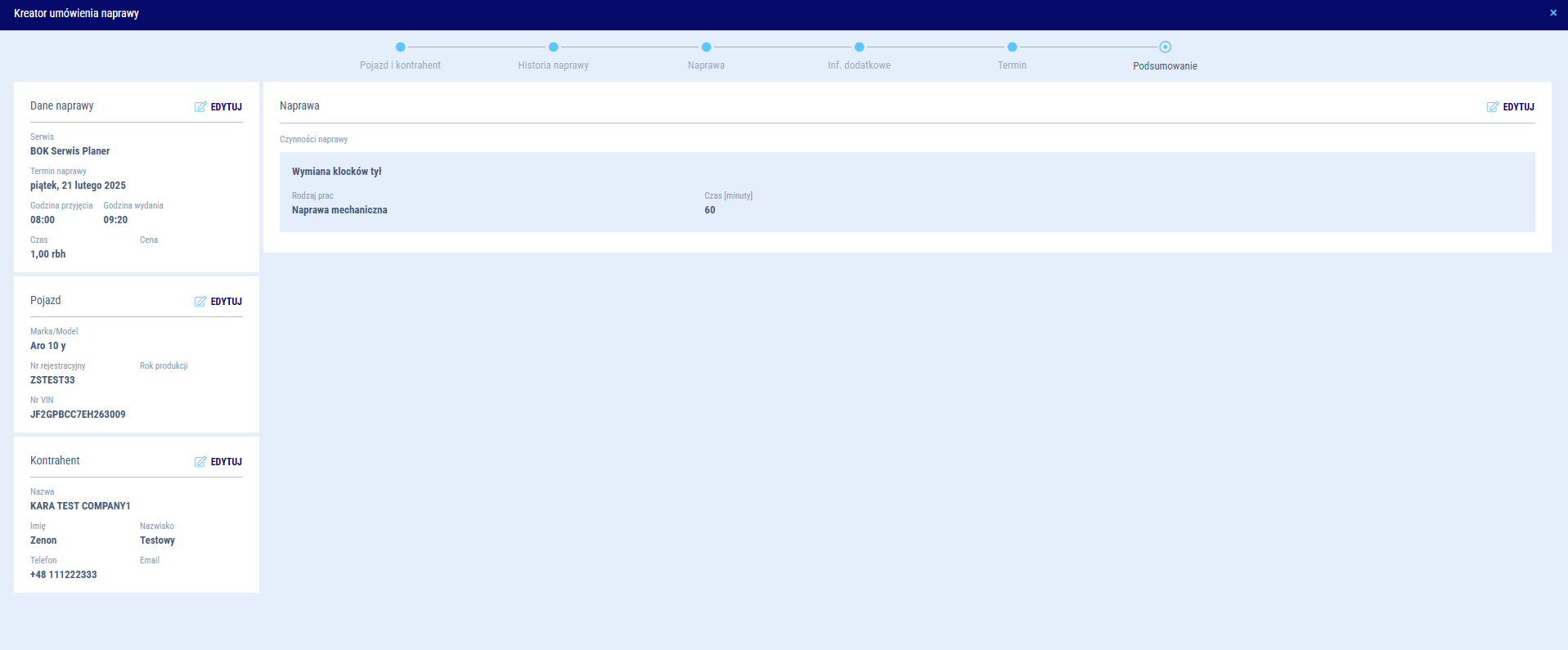 Kreator naprawy - podsumowanie