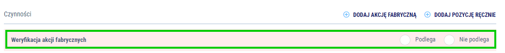 - Masz możliwość dodania Akcji fabrycznej ręcznie przy pomocy operacji