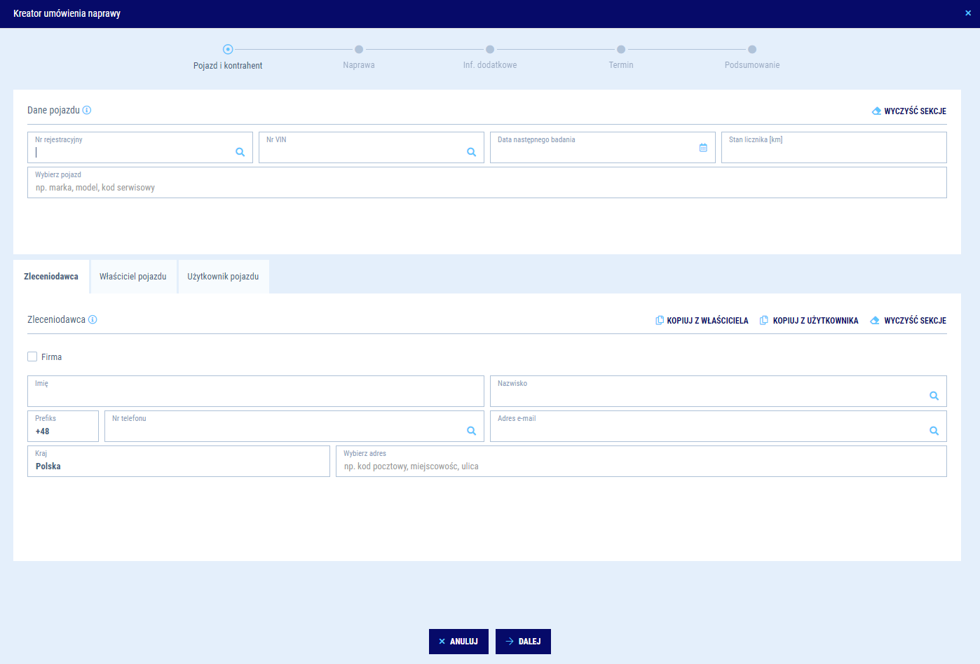 Kreator naprawy - wybór zespołu, doradcy lub mechanika